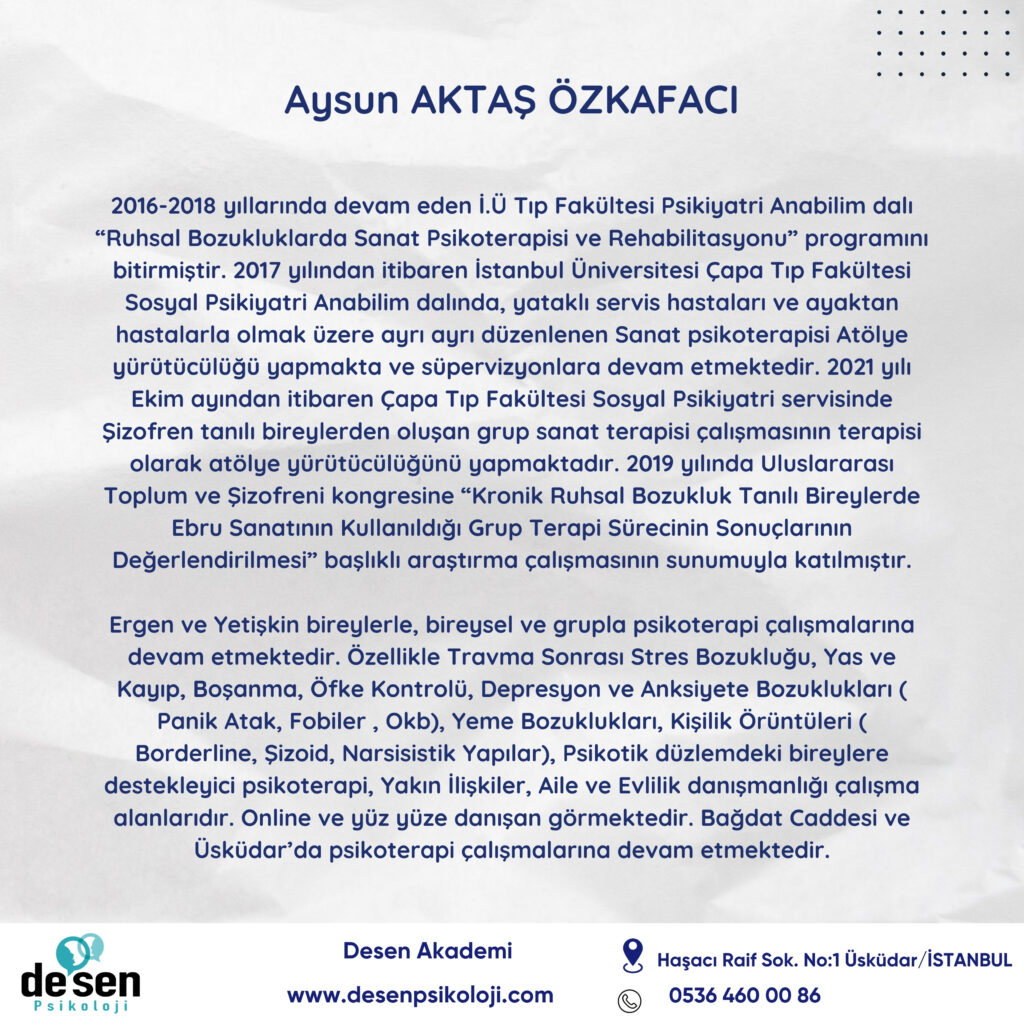 Ücret ve katılım bilgisi için Desen Psikoloji +90 536 460 00 86 numarasından ya da desenakademi instagram hesabı üzerinden bilgi alabilirsiniz.